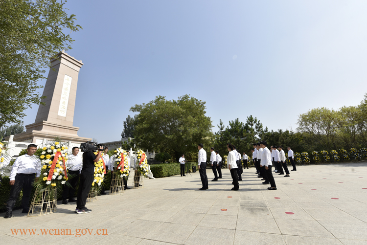 任涛迈步上前,仔细整理花篮缎带。随后,参加公祭活动的全体人员依次缓步绕行,向烈士纪念碑敬献鲜花,行鞠躬礼,并瞻仰烈士纪念碑、烈士纪念墙,参观革命烈士纪念馆,重温革命历史,感悟先烈精神。